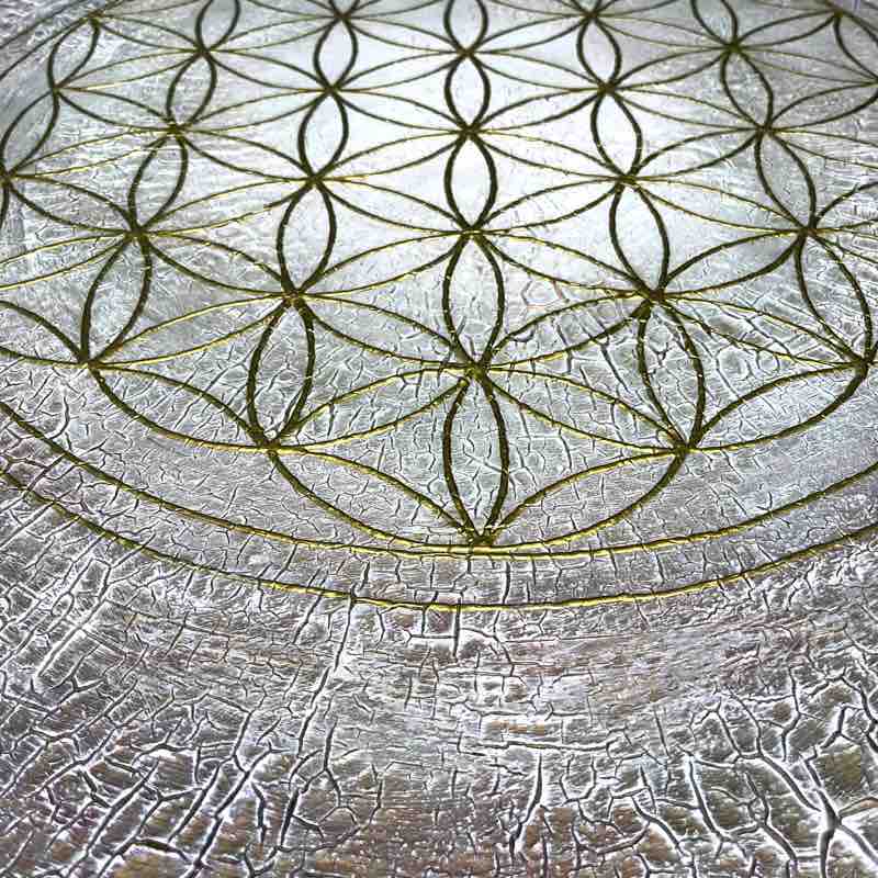 Die in Gold verewigte Blume des Lebens mit ihren vollkommenen symmetrischen Kreisen – 19 an der Zahl – ist nicht nur wunderschön anzusehen.